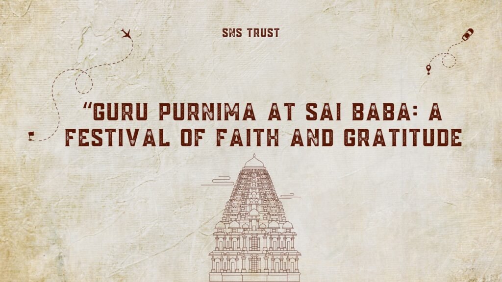 Introduction It was a bright full-moon day in the month of Ashadha when devotees of Sai Baba gathered at dawn, waiting for the first aarti. That scene captures the heart of what the festival of Guru Purnima means to us at SNS Trust. For devotees of Sai Baba, this day is more than a date on the calendar—it is a moment to pause, reflect, and renew our commitment with faith and gratitude. When we join the aarti and pooja rituals, especially on a sacred Thursday (many devotees treat Thursday as especially auspicious for Sai Baba), we are reconnecting with the meaning behind our devotion, the life lessons taught by our Guru, and the work of SNS Trust https://snstrust.in/ in creating spaces of service and sanctity. Why Guru Purnima Holds Special Meaning with Sai Baba A Day for the Guru Traditionally, Guru Purnima is the full-moon day when disciples honour their spiritual teacher. In the context of Sai Baba, this festival takes on unique resonance because Baba himself asked that his devotees mark this day of consecration. According to the official site of the Shri Saibaba Sansthan Trust in Shirdi, “Although it is of great importance in the temple, perhaps because…