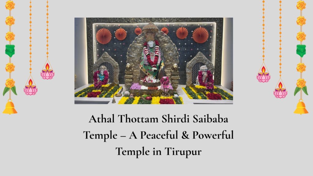 In the heart of Tamil Nadu’s textile city lies a spiritual sanctuary that devotees lovingly call one of the most peaceful temples in Tirupur. The Athal Thottam Shirdi Saibaba Temple, owned and maintained by the Thiyagi S.N. Sundarambal Trust, has become a divine landmark for those seeking blessings, healing, and inner calm. For many devotees, this is not just a Tirupur Saibaba temple—it is a place where faith meets experience. A Divine Presence in Tirupur The temple is dedicated to Sai Baba of Shirdi, the revered saint known for his teachings of love, unity, patience, and faith. Inspired by the original shrine at Shirdi Sai Baba Temple, this Shirdi Saibaba temple at Tirupur brings the spiritual vibrations of Shirdi closer to devotees in and around Tirupur. The serene idol of Baba, seated in his classic blessing posture, radiates compassion and strength. Devotees often share that the moment they step inside the temple, they feel a wave of calmness wash over them. Why It Is Known as a Powerful Temple in Tirupur Among locals, Athal Thottam Shirdi Saibaba Temple is often described as a Tirupur powerful temple. Many devotees believe that sincere prayers offered here bring clarity, solutions, and peace of…
